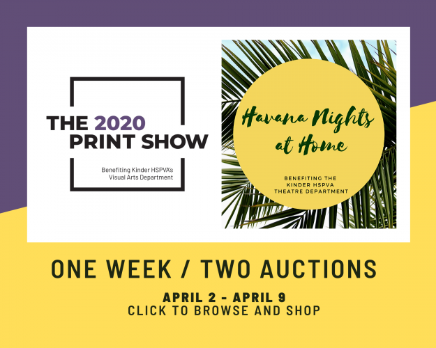 It’s time to party, social-distancing style!Place your bids to support Theatre and Visual Arts at Kinder HSPVA. Auctions close at 9:00pm on Thursday, April 9th. Bid in the Theatre Gala…